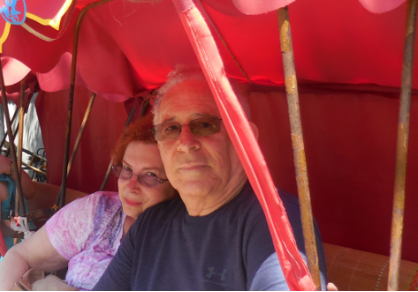 The couple enjoying a rickshaw ride