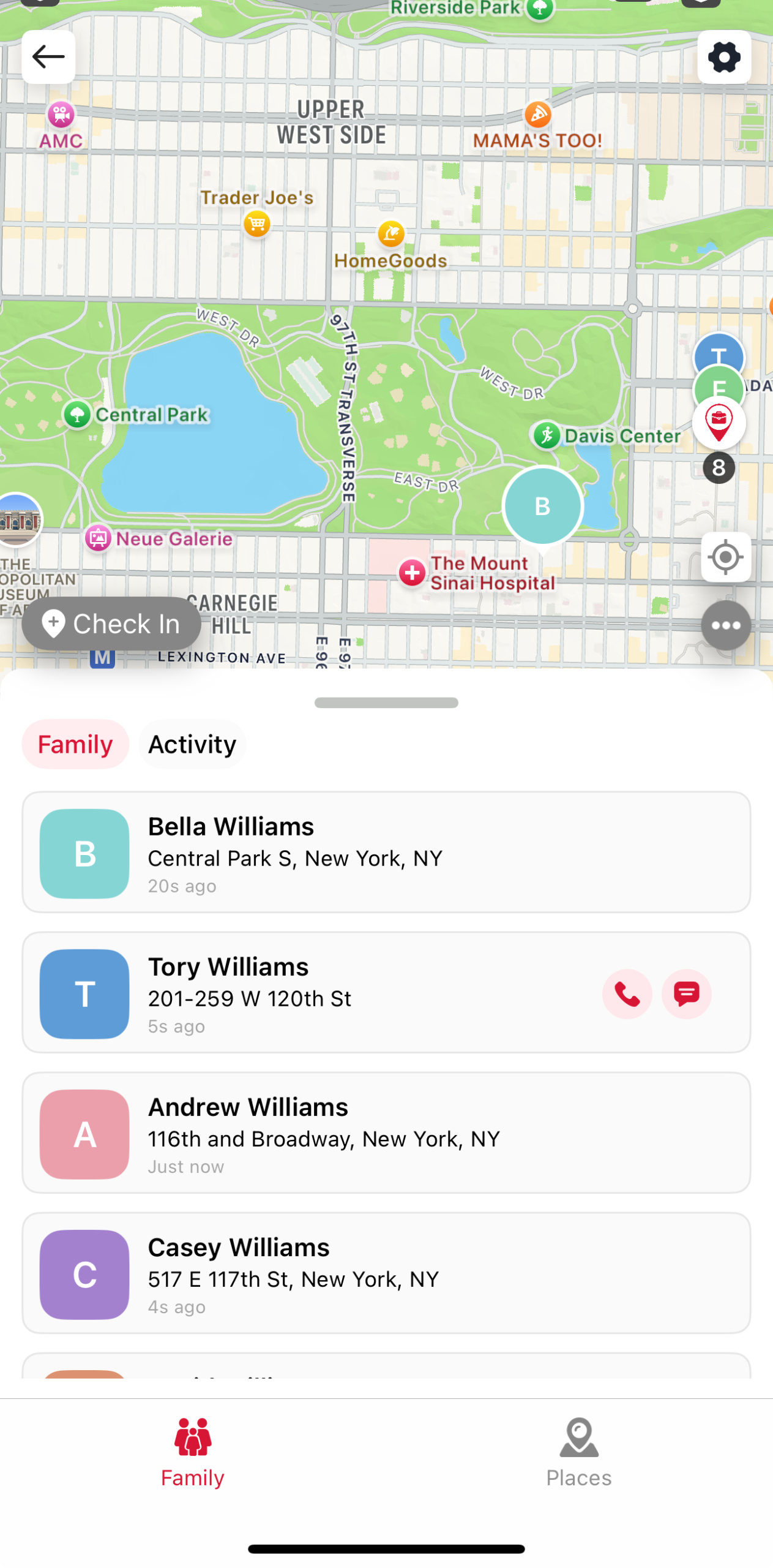 Use the Search bar at the top or the Alphabetical scroll bar on the right side of the screen to quickly jump to a specific destination.