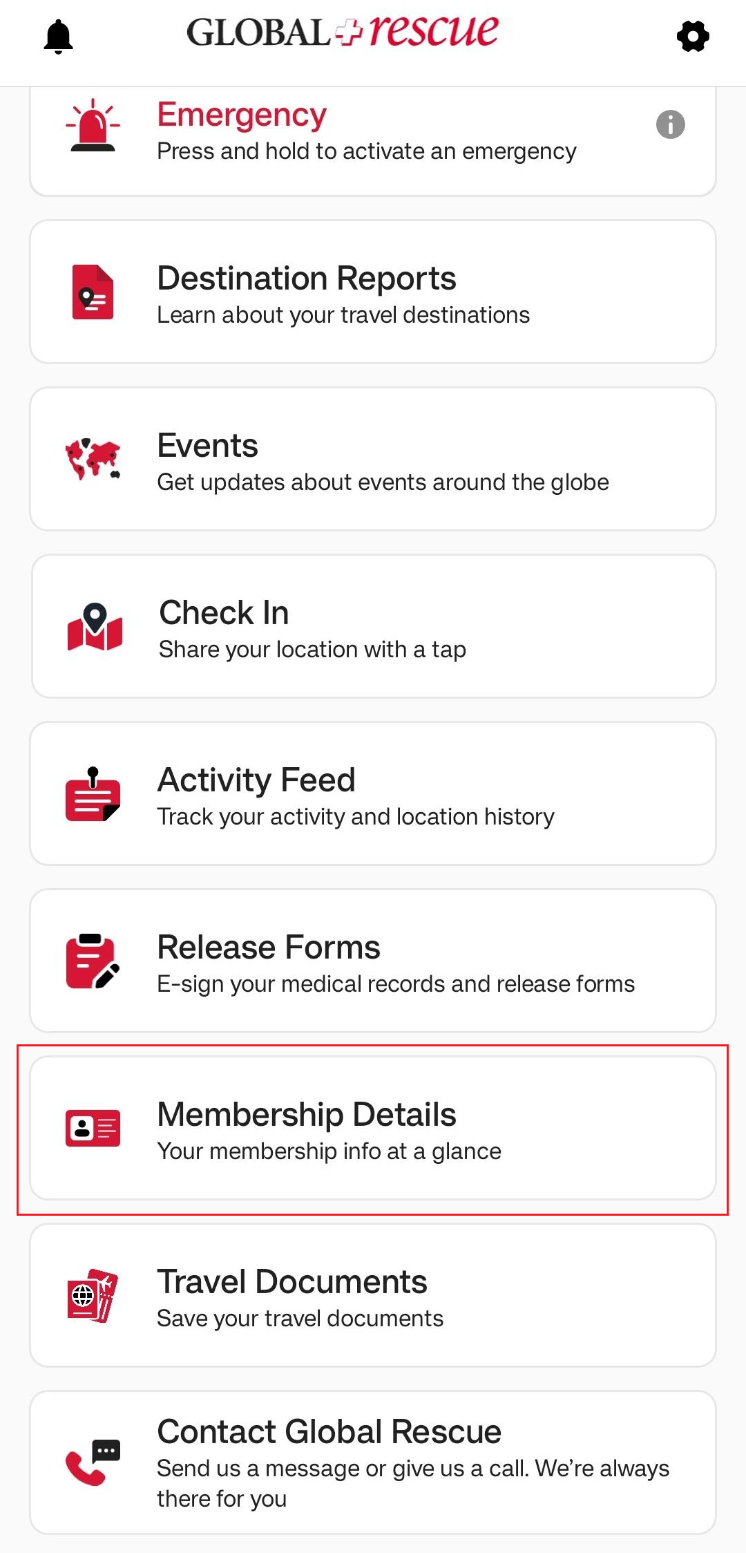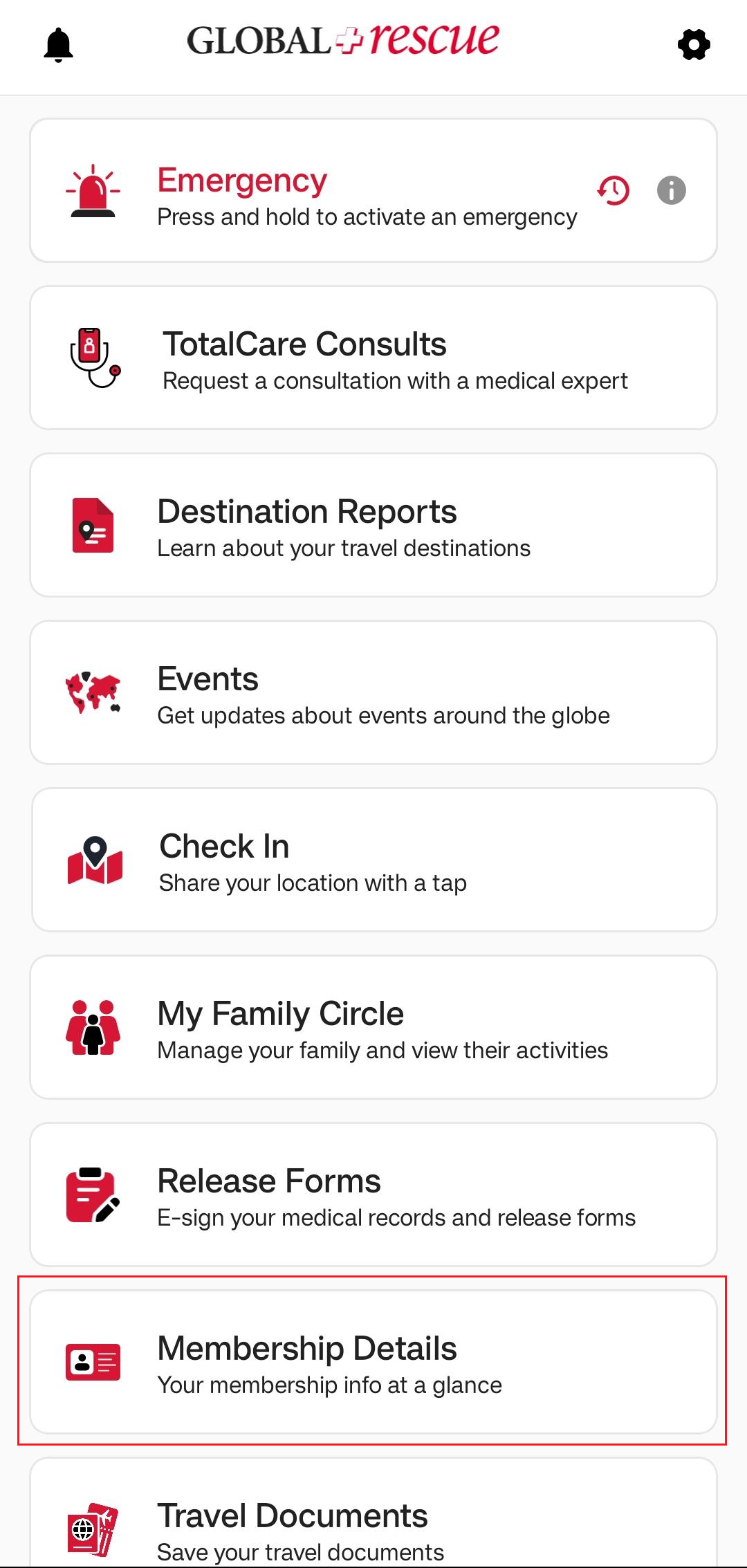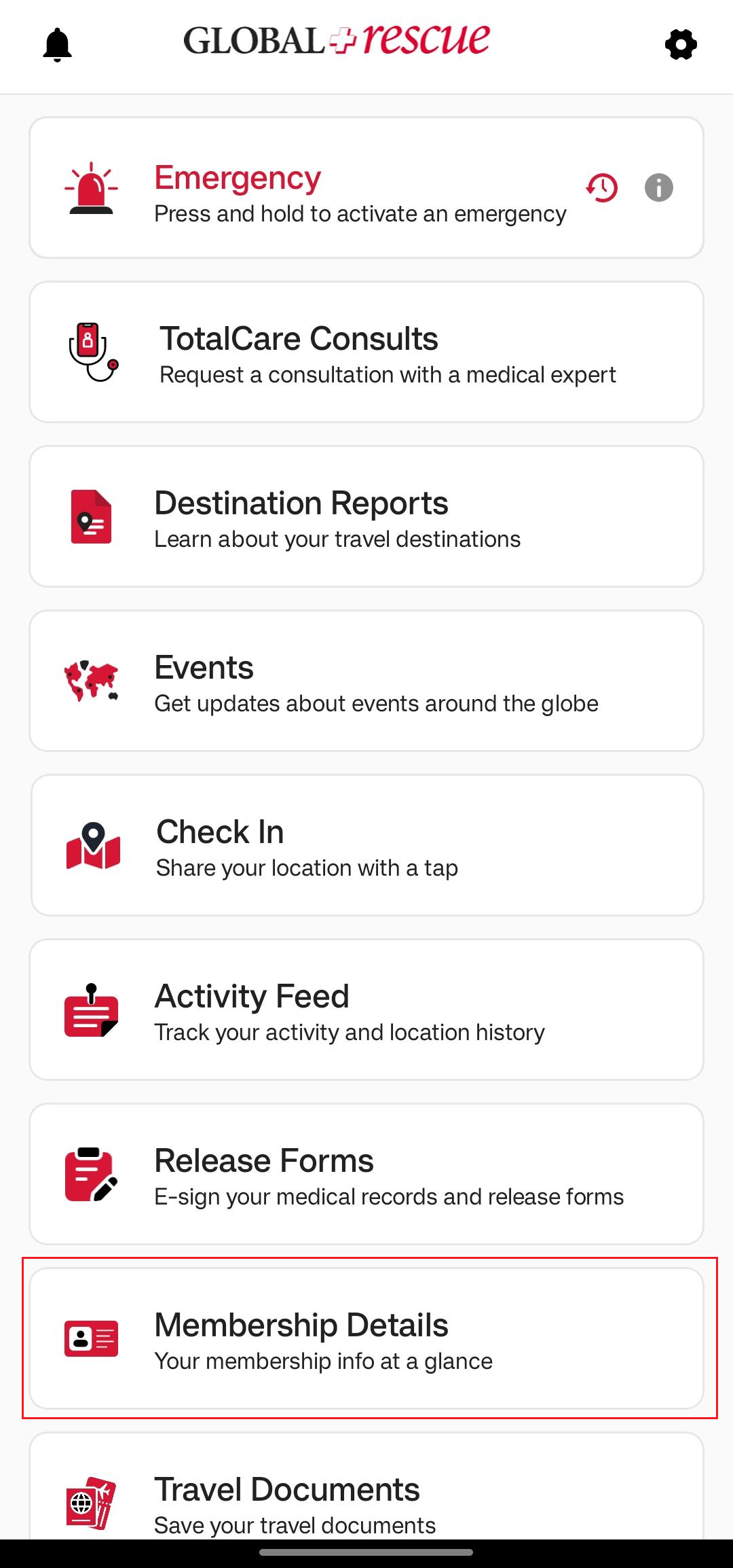 On the Destination Report screen, you’ll find detailed information about the country. The Overall Risk Rating is assigned based on a range of factors, which are explained across the different sections of the report. Each section opens in a new screen for easy viewing. To learn more about the possible risk ratings, tap the question mark next to Overall Risk Rating.