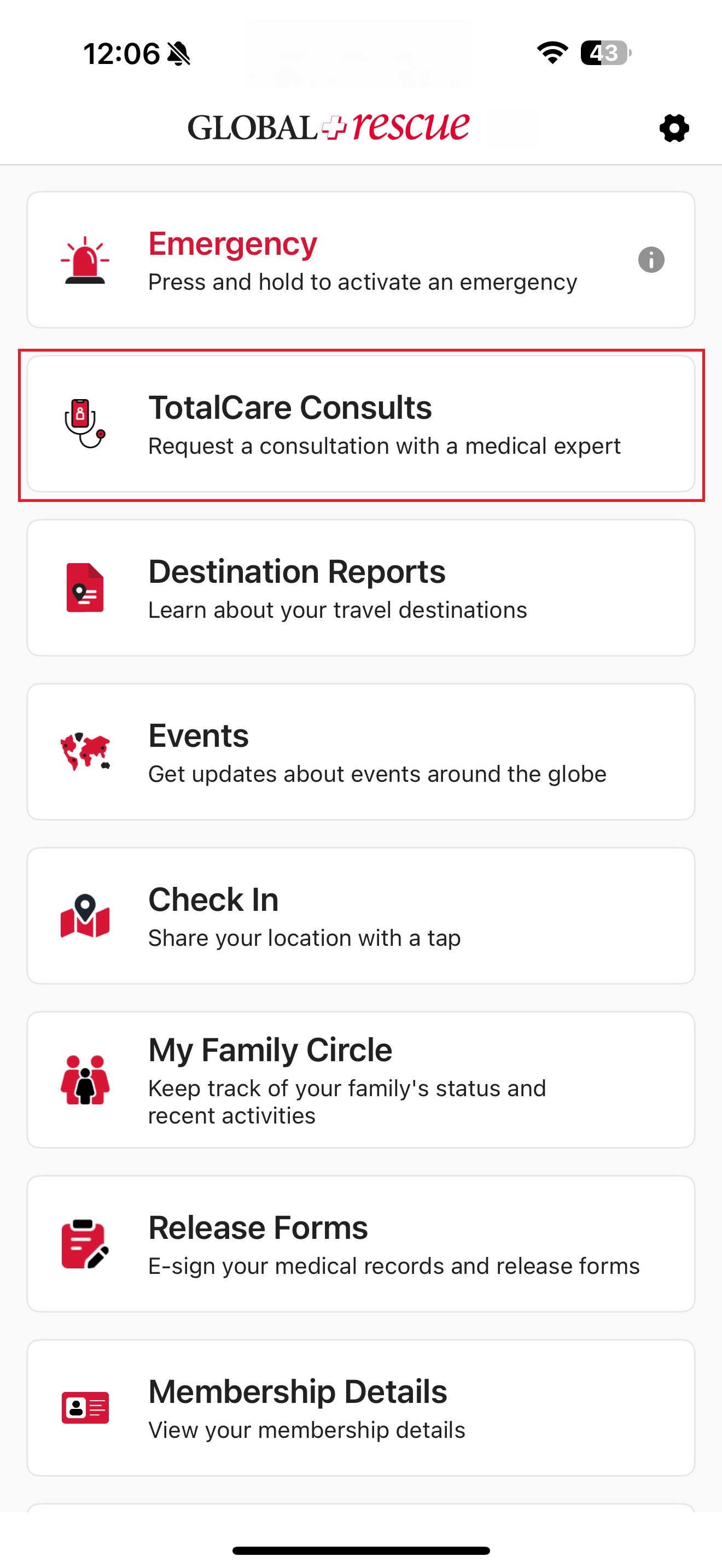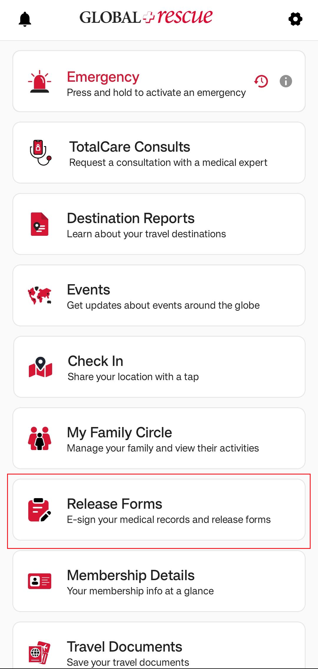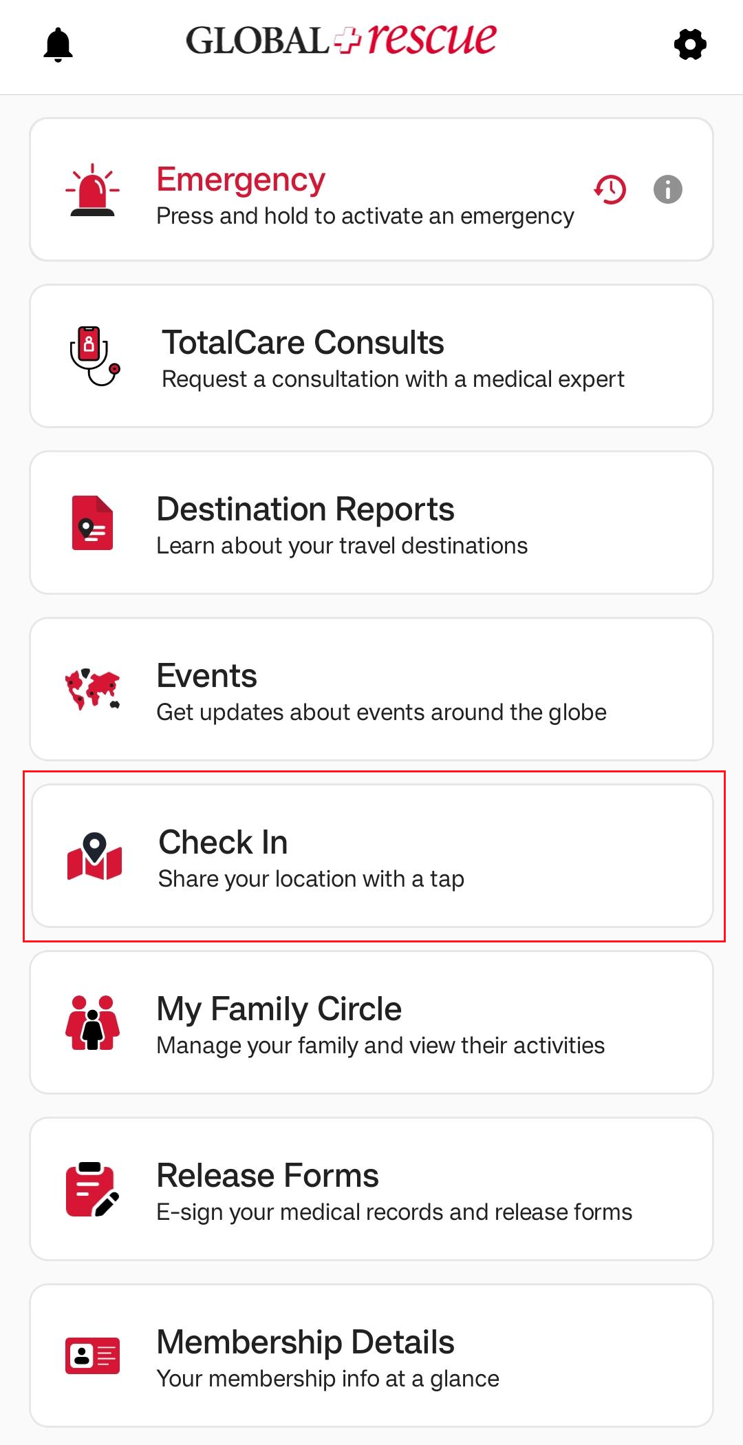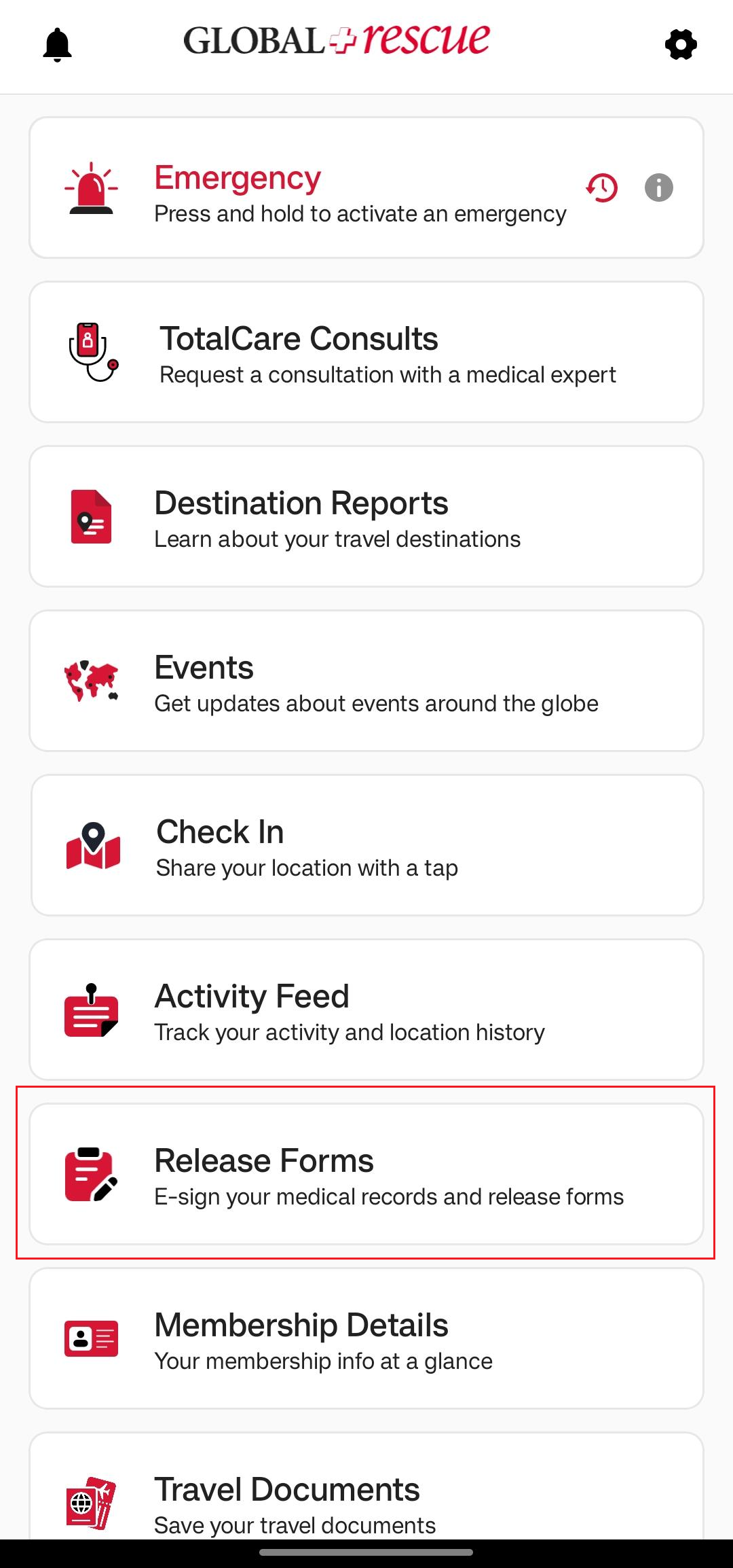 On the Destination Report screen, you’ll find detailed information about the country. The Overall Risk Rating is assigned based on a range of factors, which are explained across the different sections of the report. Each section opens in a new screen for easy viewing. To learn more about the possible risk ratings, tap the question mark next to Overall Risk Rating.