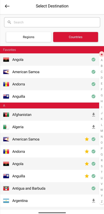 Keep your most important destinations at the top for quick access. Favorites appear in a separate section at the top of the ‘Countries’ tab.