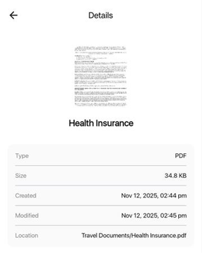 Simply tap on a country to view that country’s destination report. The app automatically downloads it to your device. This allows you to read the information later, even if you don’t have an internet connection. The green checkmark icon next to a country indicates that the report is already downloaded and available for offline viewing.