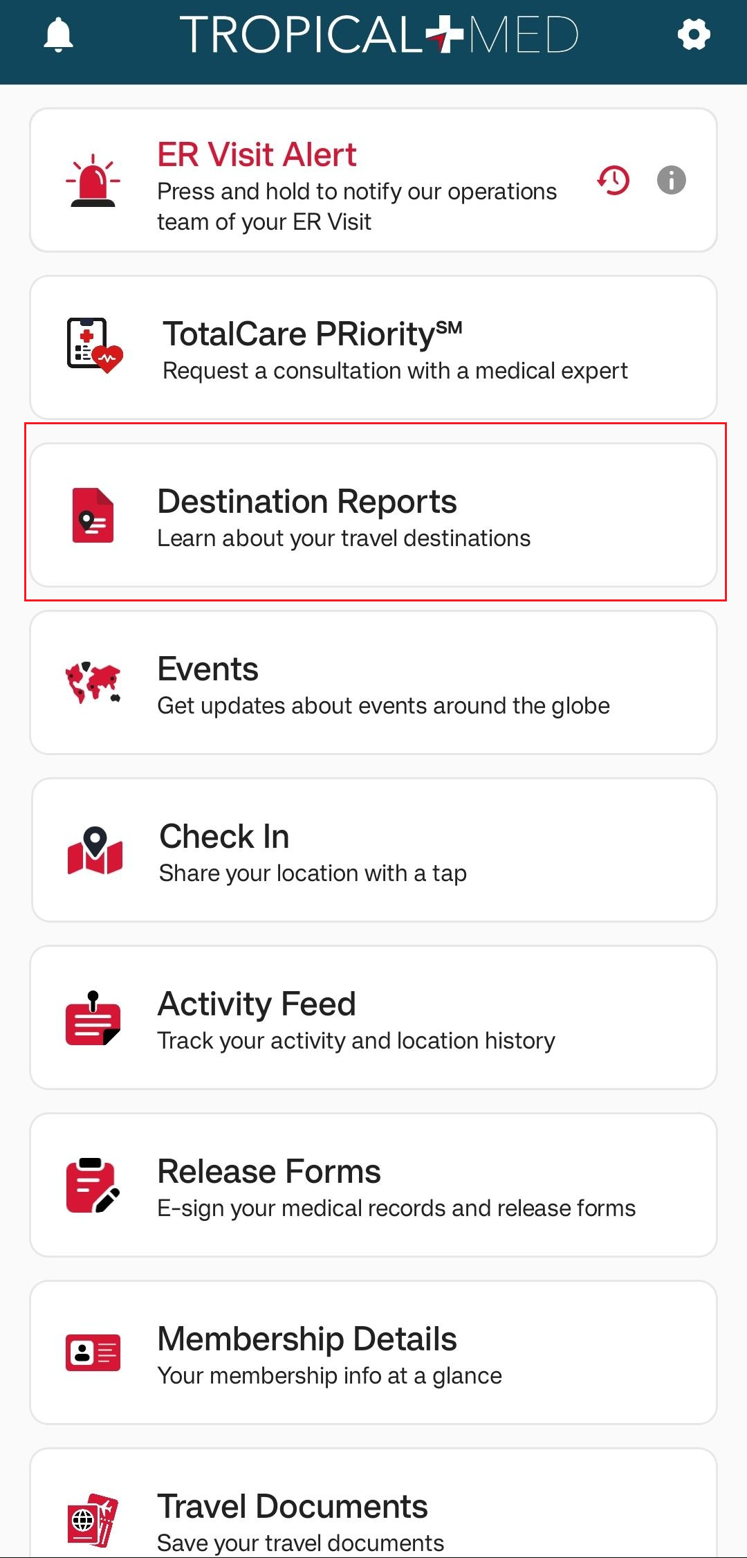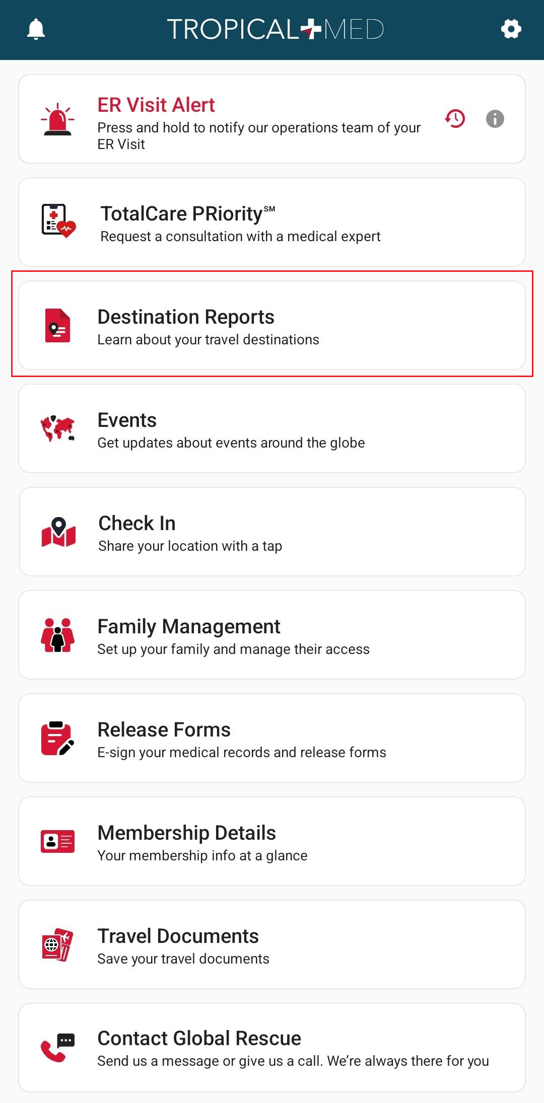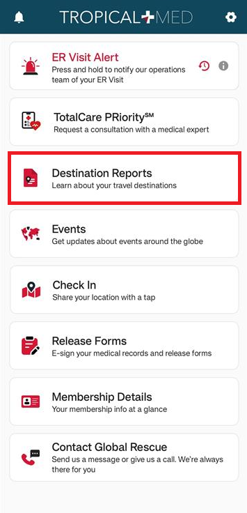 Tap on a country to view that country’s destination report. The app also downloads the destination report so that you can view it later, even without an internet connection. Downloaded destination reports will have a green ‘tick’ icon.