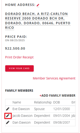 To edit an existing Family Member, tap the edit icon against the member’s name under the “Family Members” section.