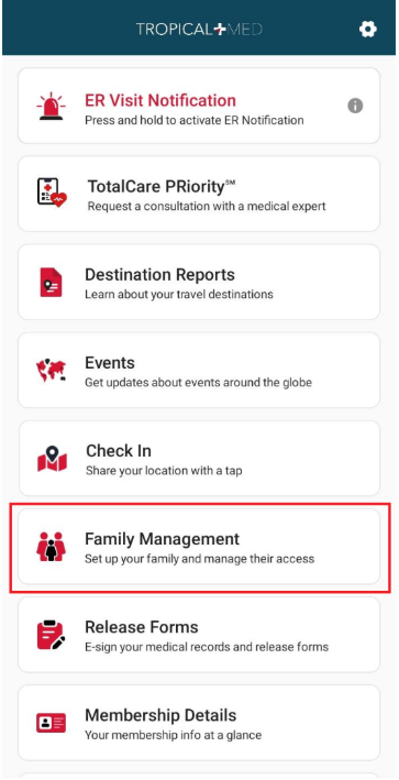 Tap on “Family Management” on home screen. Family management will open in browser.